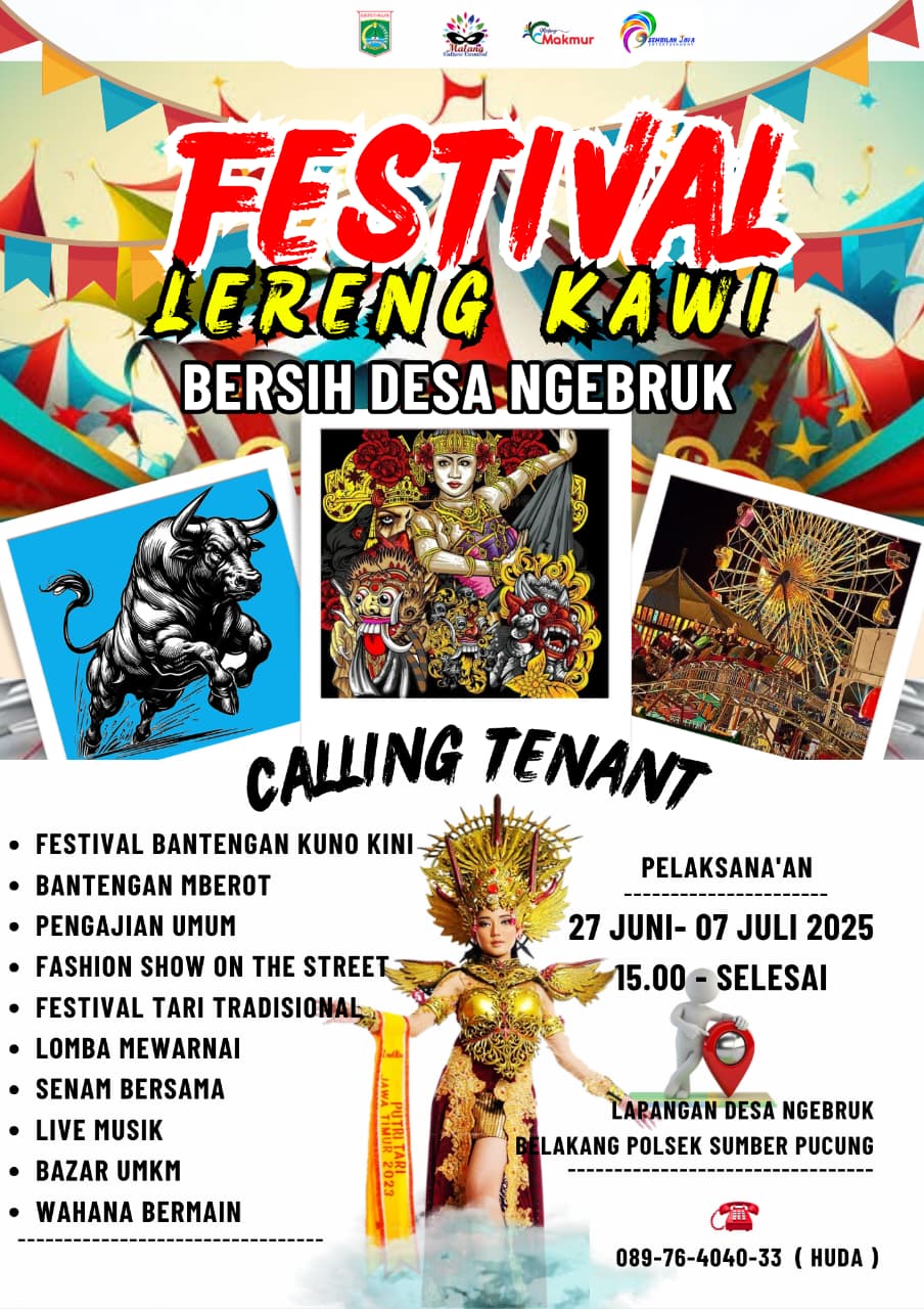 Jangan lewatkan Festifal Lereng Kawi 2025 dalam rangka Bersih Desa Ngebruk Sumberpucung, yang akan gelar, pada 27 Juni s/d 07 Juli 2025, Acara istimewa ini akan di meriahkan dengan beragam kegiatan seni dan Budaya yang spektakuler. dan suasana yang tak hanya menghibur, tetapi juga sarat makna budaya.