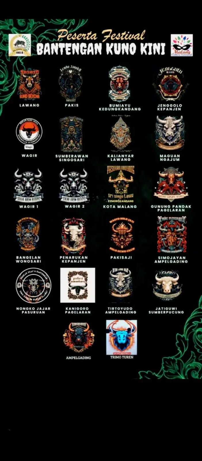 Festival Bantengan Kuno Kini diselenggarakan pada tanggal 1–3 November di area depan Stadion Kanjuruhan, Kabupaten Malang. Kegiatan ini menghadirkan berbagai pertunjukan seni tradisional bantengan dari berbagai wilayah yang ada di kabupaten malang, yang menampilkan perpaduan antara gaya bantengan klasik (kuno) dan kreasi modern (kini). Festival ini menjadi ajang pelestarian budaya sekaligus hiburan rakyat, dengan rangkaian kegiatan seperti arak-arakan bantengan, pameran seni budaya, dan pentas musik tradisional. Melalui kegiatan ini, diharapkan semangat gotong royong, kebersamaan, dan kecintaan terhadap warisan budaya lokal semakin tumbuh di tengah masyarakat Kabupaten Malang