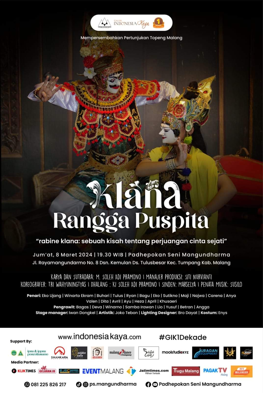 Pertunjukan wayang topeng Malang 'Klana Rangga Puspita', sebuah persembahan yang terinspirasi dari Foklore tentang Legenda Goa Polaman, situs peninggalan Kerajaan Singosari di Lawang, Kab. Malang.
