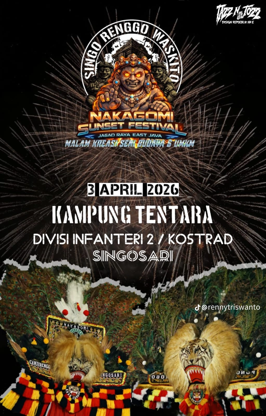 Semangat pelestarian budaya dan penguatan ekonomi kreatif kembali hadir dalam gelaran Nakagomi Sunset Festival 2026 yang akan diselenggarakan pada tanggal 3 April 2026 di kawasan Kampung Tentara, Divisi Infanteri 2/Kostrad, Singosari.