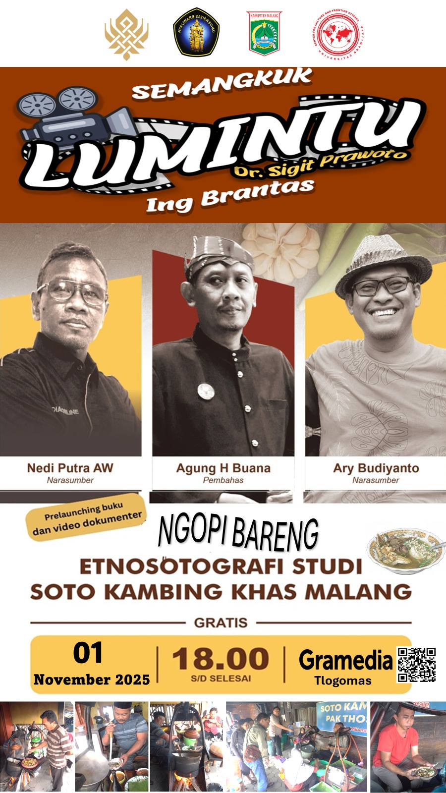 Melalui kegiatan ini, peserta diajak menelusuri makna, filosofi, dan nilai sosial di balik sajian legendaris Soto Kambing khas Malang. Acara ini menghadirkan tiga tokoh budaya dan peneliti kuliner, yakni Nedi Putra AW dan Ary Budiyanto sebagai narasumber, serta Agung H Buana sebagai pembahas. Selain itu, kegiatan ini juga menjadi momentum prelaunching buku dan video dokumenter “Lumintu: Dr. Sigit Prawoto Ing Brantas”, yang mengangkat tema warisan kuliner dan budaya lokal.