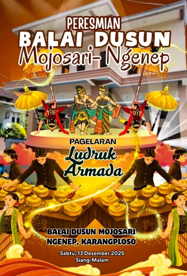 Peresmian Balai Dusun Mojosari–Ngenep kecamatan Karang ploso akan digelar dengan meriah pada Sabtu, 13 Desember 2025 di Balai Dusun Mojosari Ngenep, Karangploso. Acara ini dimeriahkan dengan Pagelaran Ludruk Armada, yang menampilkan keindahan seni tradisional Jawa Timur yang sarat makna dan menghibur warga. Kegiatan ini menjadi simbol penting dimulainya pemanfaatan balai dusun baru sebagai pusat aktivitas sosial dan budaya masyarakat. Dengan antusiasme yang tinggi, warga menyambut baik acara ini sebagai wujud kebersamaan dan komitmen dalam melestarikan seni budaya lokal. (crytink/Red)