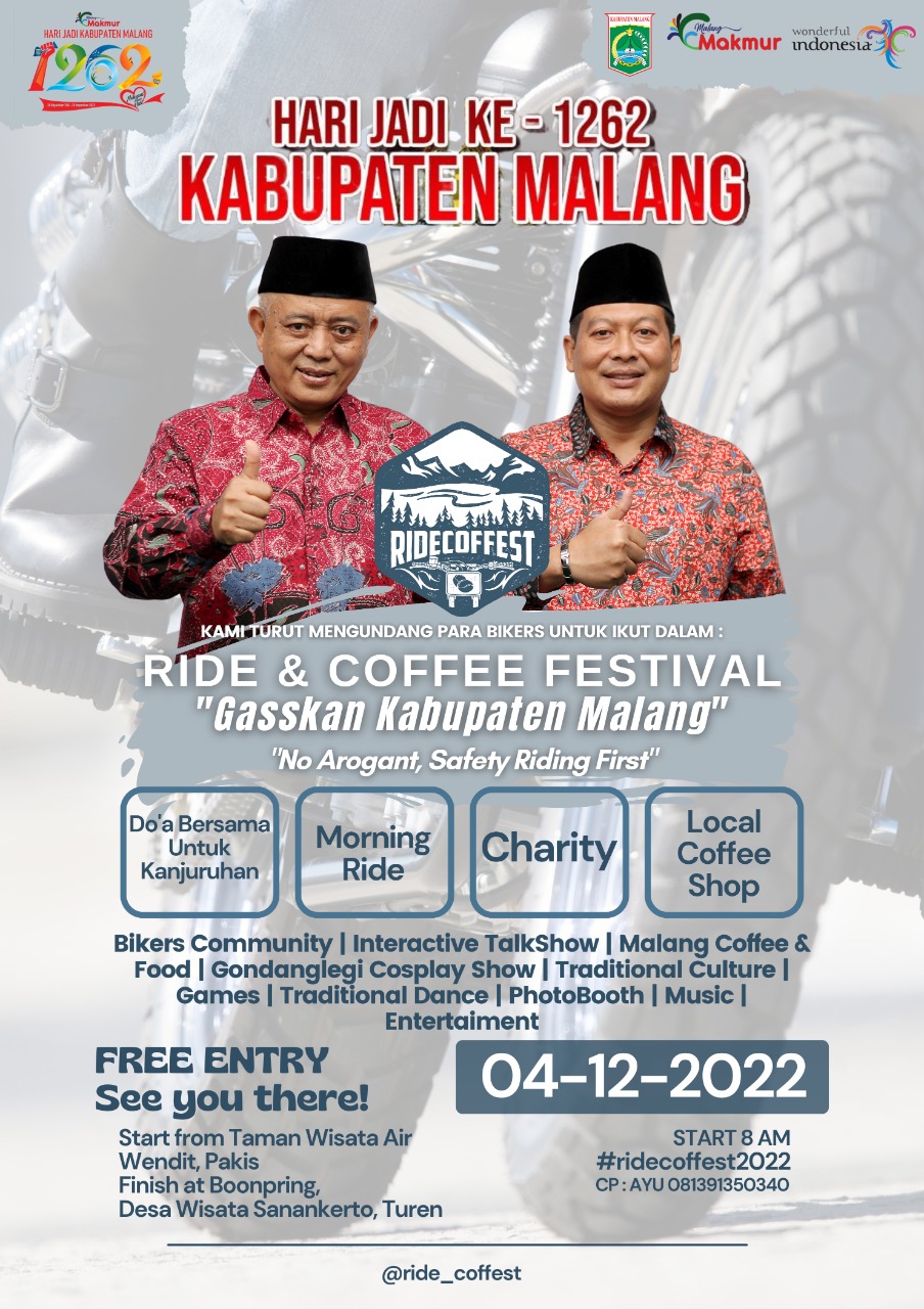 Ride Coffest (Ride and Coffee festival) adalah Event yang menjadi wadah yang tepat bagi para pelaku industri Pariwisata dan Ekonomi Kreatif seperti pengrajin kopi dalam mempromosikan produknya juga sebagai sarana promosi wisata Kabupaten Malang melalui Komunitas khususnya komunitas otomotif. Tidak hanya itu, Ride Coffest diharapkan dapat mengajak industri kreatif di Kabupaten Malang untuk ikut serta meramaikan Event ini sekaligus membantu mempromosikan wisata di Kabupaten Malang.