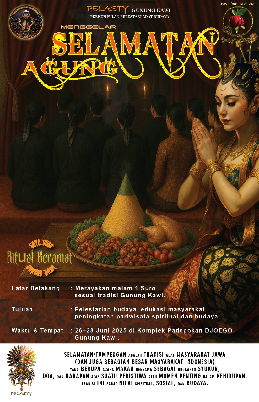 PELASTI ( Perkumpulan Pelestari Adat Budaya ) Gunung Kawi menggelar serangkaian kegiatan dalam rangka melestarikan Tradisi Adat Desa dengan tema Ritual Keramat Satu Suro susuai adat tradisi Masyarakat Gunung Kawi. dengan tujuan Pelestarian Budaya , Edukasi Masyarakat, Peningkatan Pariwisata dan Budaya