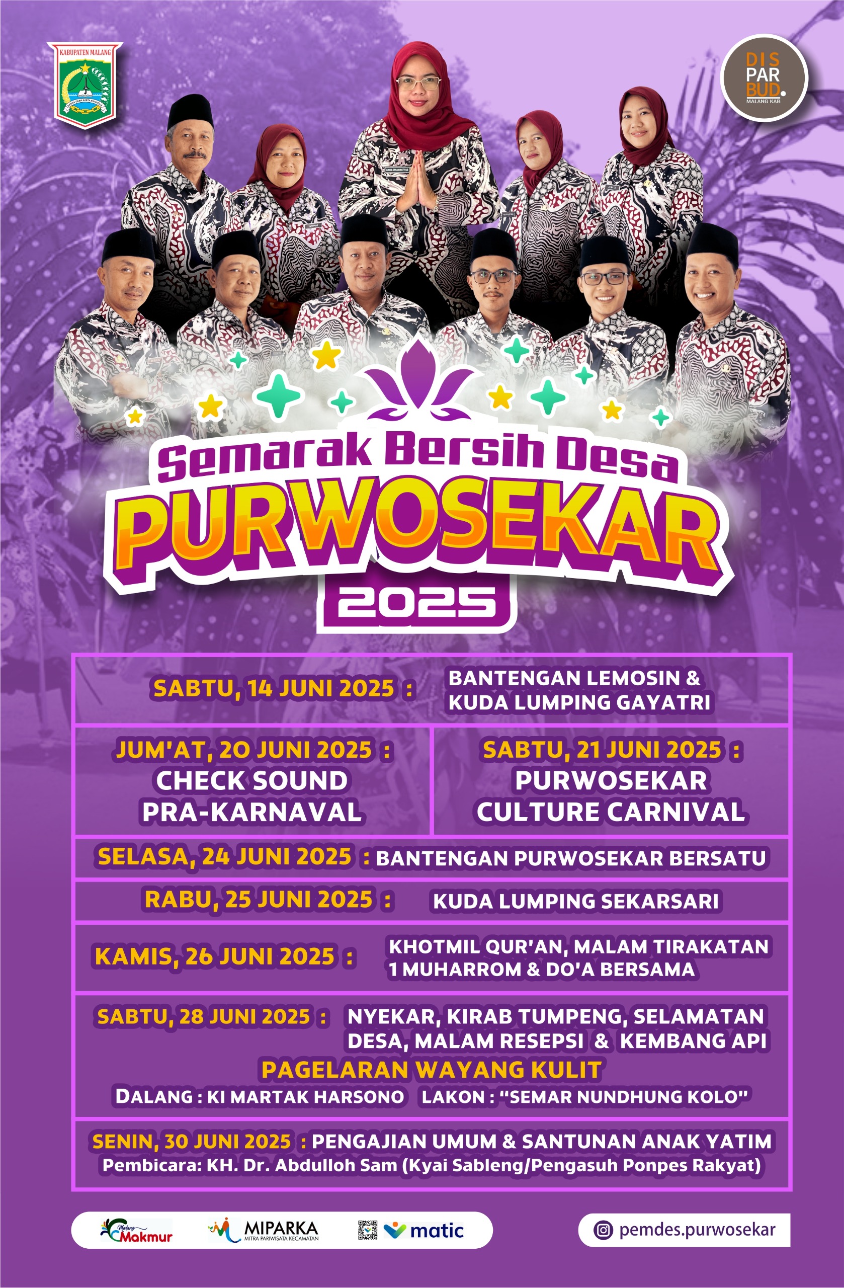 Semarak Bersih Desa Purwosekar akan dimeriahkan dengan beberapa kegiatan,antara lain: