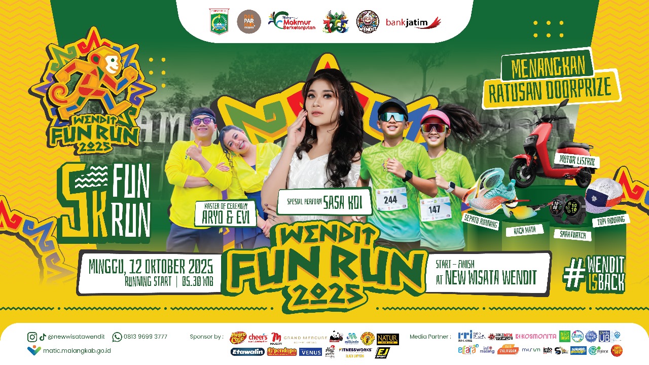 Yuk ramaikan keseruan 5K Fun Run di New Wisata Wendit, Minggu, 12 Oktober 2025 mulai pukul 05.30 WIB!