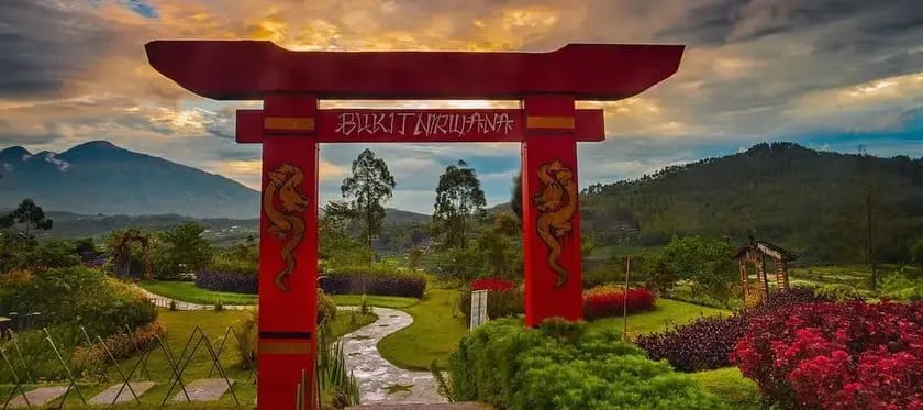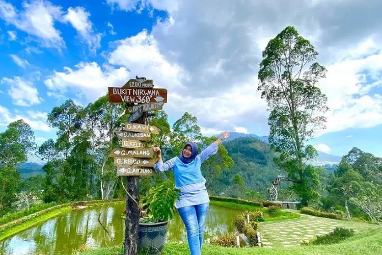 Bukit Nirwana, sebuah permata tersembunyi di Desa Pujon Kidul, Kecamatan Pujon, Kabupaten Malang, menawarkan pesona alam yang begitu memikat. Berada di ketinggian sekitar 1.200 mdpl, tempat ini menyuguhkan panorama spektakuler yang dikelilingi oleh hamparan hijau nan asri. Dari puncaknya, mata akan dimanjakan oleh keindahan sepuluh gunung yang berdiri megah, termasuk Gunung Kawi dan Gunung Arjuna, menciptakan lanskap yang begitu menenangkan. Bukit Nirwana juga dikenal sebagai surga bagi para pecinta fotografi. Berbagai spot foto menarik, seperti Gardu Pandang dan Taman Bunga, siap mempercantik momen liburan. Keindahan tempat ini tidak hanya terpancar di siang hari—saat malam tiba, suasana semakin magis. Dari ketinggian, pengunjung dapat menikmati pemandangan Kota Batu yang berkelap-kelip bagaikan hamparan bintang di bumi, menciptakan nuansa romantis yang sulit dilupakan. Dengan harga tiket masuk yang sangat terjangkau, hanya sekitar Rp 10.000 per orang, Bukit Nirwana juga menyediakan fasilitas berkemah bagi mereka yang ingin merasakan sensasi bermalam di alam terbuka. Fasilitas umum di tempat ini pun cukup lengkap, mulai dari area parkir yang luas, toilet, mushola, hingga warung makan yang menyajikan hidangan khas setempat. Buka setiap hari dari pukul 08.00 hingga 18.00 WIB, Bukit Nirwana menjadi pilihan sempurna untuk menghabiskan waktu bersama keluarga atau teman-teman, menikmati keindahan alam yang menenangkan di Kabupaten Malang.