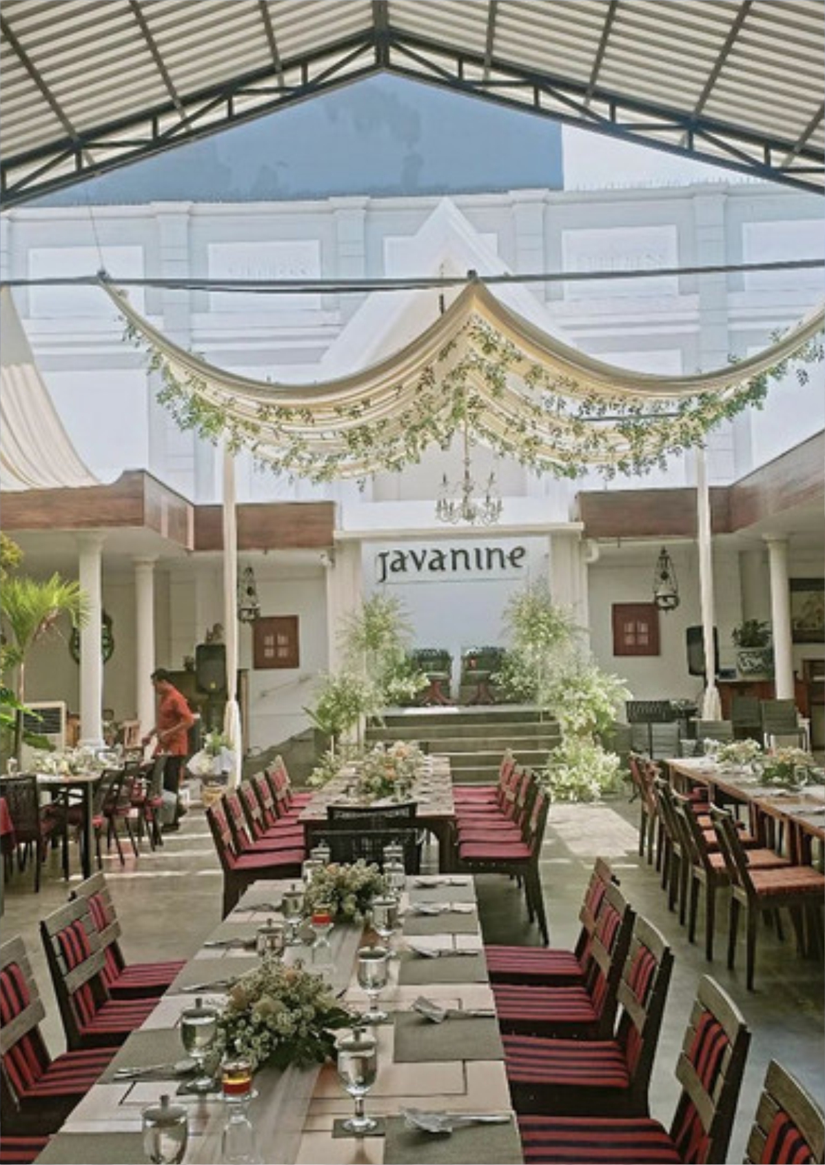 Javanine adalah restoran jawa berkonsep mewah dan elegan berdiri sejak tahun 2015. Javanine Resto menggabungkan konsep restoran dan kafe. Sehingga di sini bisa dijadikan tempat untuk makan,meeting dan juga nongkrong. Bahkan di sini juga bisa dijadikan tempat untuk pesta pernikahan maupun tunangan. Javanine Resto menyajikan aneka masakan Jawa. Masakan Jawa tersebut dikemas dengan cara yang lebih modern dan elegan. Selain masakan Jawa, resto ini juga menyediakan makanan lainnya seperti spaghetti, pizza dan juga chicken