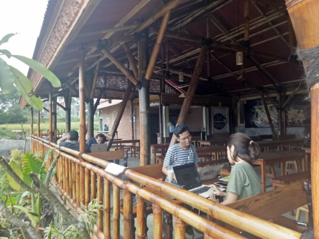 Kasemo Kafe kafe bernuansa bale-bale yang sangat cocok untuk mengadakan pertemuan terbatas dengan kolega
