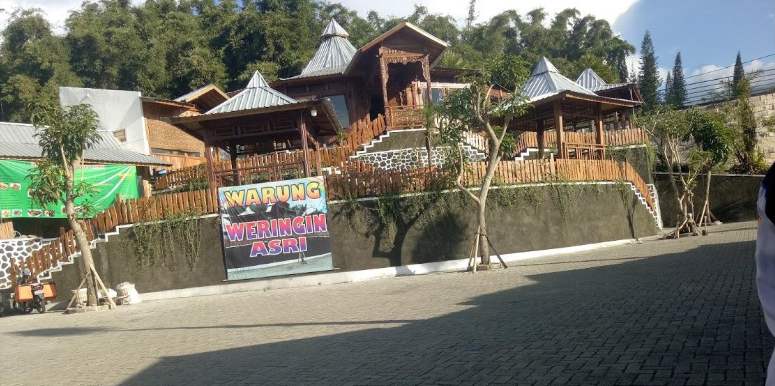 Rumah makan yang terletak di Jalan Rajek Wesi, Kecamatan Pujon, Kabupaten Malang, ini berjarak sekitar 4,7 kilometer atau kurang lebih 10 menit dengan kendaraan bermotor dari Desa Wisata Pujon Kidul. Rumah Makan Weringin Asri menyediakan menu makanan khas Jawa, seperti ayam kampung, rawon, oseng klotok, lalapan ayam kampung, dan masih banyak lagi. Rumah Makan Weringin Asri dikelilingi oleh kebun hijau dan pepohonan yang memberikan suasana yang asri dan segar. Desain bangunan dan dekorasi interior yang sederhana namun elegan menciptakan atmosfer yang nyaman dan hangat. Kamu dapat memilih untuk makan di dalam ruangan atau di teras dengan pemandangan yang menakjubkan