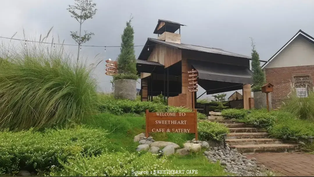 Sweetheart Cafe & Eatery adalah kafe dengan nuansa rustic yang memadukan kehangatan desain tradisional dengan suasana alam yang memukau. Terletak di tengah pemandangan persawahan hijau dan latar pegunungan yang menenangkan, kafe ini menjadi tempat sempurna untuk melepas penat sekaligus berburu foto estetik. Berbagai pilihan area ditawarkan oleh kafe ini, mulai dari indoor yang nyaman, semi-outdoor yang teduh, hingga outdoor yang yang langsung menghadap ke panorama alam. Setiap sudutnya dirancang dengan detail untuk menciptakan atmosfer yang instagramable, cocok untuk mengabadikan momen bersama teman, keluarga, atau pasangan. Beragam aktivitas dapat dilakukan di Sweetheart Coffee, mulai dari menikmati suasana santai ngopi, menggelar acara keluarga, merayakan ulang tahun, menyelenggarakan rapat, hingga sesi pemotretan prewedding dengan pemandangan cantik yang berkesan. Sweetheart Cafe & Eatery dirancang untuk memenuhi kebutuhan berbagai jenis acara, menjadikannya pilihan yang ideal untuk momen santai maupun spesial.